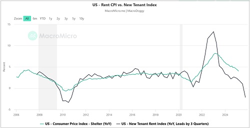 In addition, shelter cost is a big component of CPI, and it has a long lag time before it shows up. But as shown below, New Tenant Rents tends to lead CPI shelter cost by about 3 quarters, and it has been falling like a rock. So, with both oil prices and shelter prices cratering, and with the flood of the prior administration’s last-minute federal spending behind us, it is more evidence that we should expect subdued inflation metrics going forward, along with a barely positive GDP. The FOMC should feel free to ease rates starting in June.