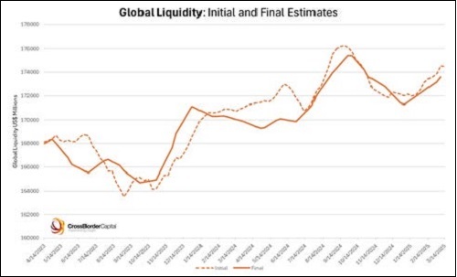 Here's the troubling news. As economist Michael Howell of CrossBorder Capital opines, “Debt may be bad per se, but too much debt relative to liquidity is a disaster in modern economies, because debts need to be rolled over and liquidity is the vehicle. Put another way, financial markets serve as a vast refinancing mechanism, and less so in their textbook role as sources of new capital. This explains why we emphasize balance sheet quantities, not interest rates… Looking ahead, a major bogey investors must face is the upcoming ‘debt maturity wall.’ This refers to the need to roll over debts termed out during the COVID emergency some 5 years ago, when interest rates collapsed to near zero. These demands peak in 2027, but they begin to bite from around mid-2025.”