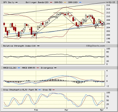 The major market indexes continue to toil below recent support-turned-resistance thresholds, including S&P 500 2,100, Dow Jones Industrials 18,000, and NASDAQ 5,000. The holiday-shortened week started out with a bang on Monday, but then drifted lower in anticipation of the jobs report on Friday and this week’s start to earnings season and the Q1 reports. As it turned out, Labor Department data for March showed that U.S. employers added the fewest jobs in over a year, with only 126,000 jobs versus expectations of 245,000, but the unemployment rate remained unchanged at 5.5%.