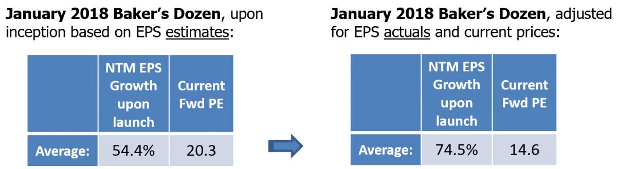The main periods of underperformance were in 2H2011 and the 12-month timeframe 2H2015-1H2016, during which the market was news-driven rather than fundamentals-driven. You can find more information, including the specific holdings of each historical January portfolio, as well as the new monthly Baker’s Dozens, on our public website: http://bakersdozen.sabrient.com.