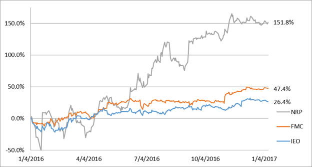 The oil and gas sector has also rebounded substantially off of its lows in 2016. Since November 4, 2016, the oil ETF XOP has outperformed the S&P500 by roughly 12%, rising a remarkable 19% in under three months. One oil and gas stock that has done particularly well is FMC Corp (FMC). Since 1/11/16, shares have risen 41%, impacted in large part by the June 2016 announcement of a pending merger with Technip. While this merger is set to close shortly in Q1 2017, any investors that plan to hold his/her shares post-merger should be aware of the shift in FMC’s quality of earnings.