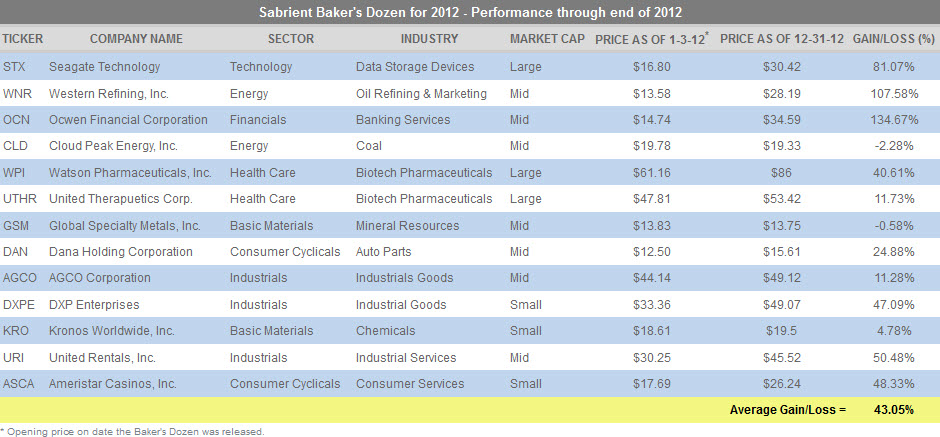 | Sabrient Baker's Dozen for 2011 - Performance | |||||||